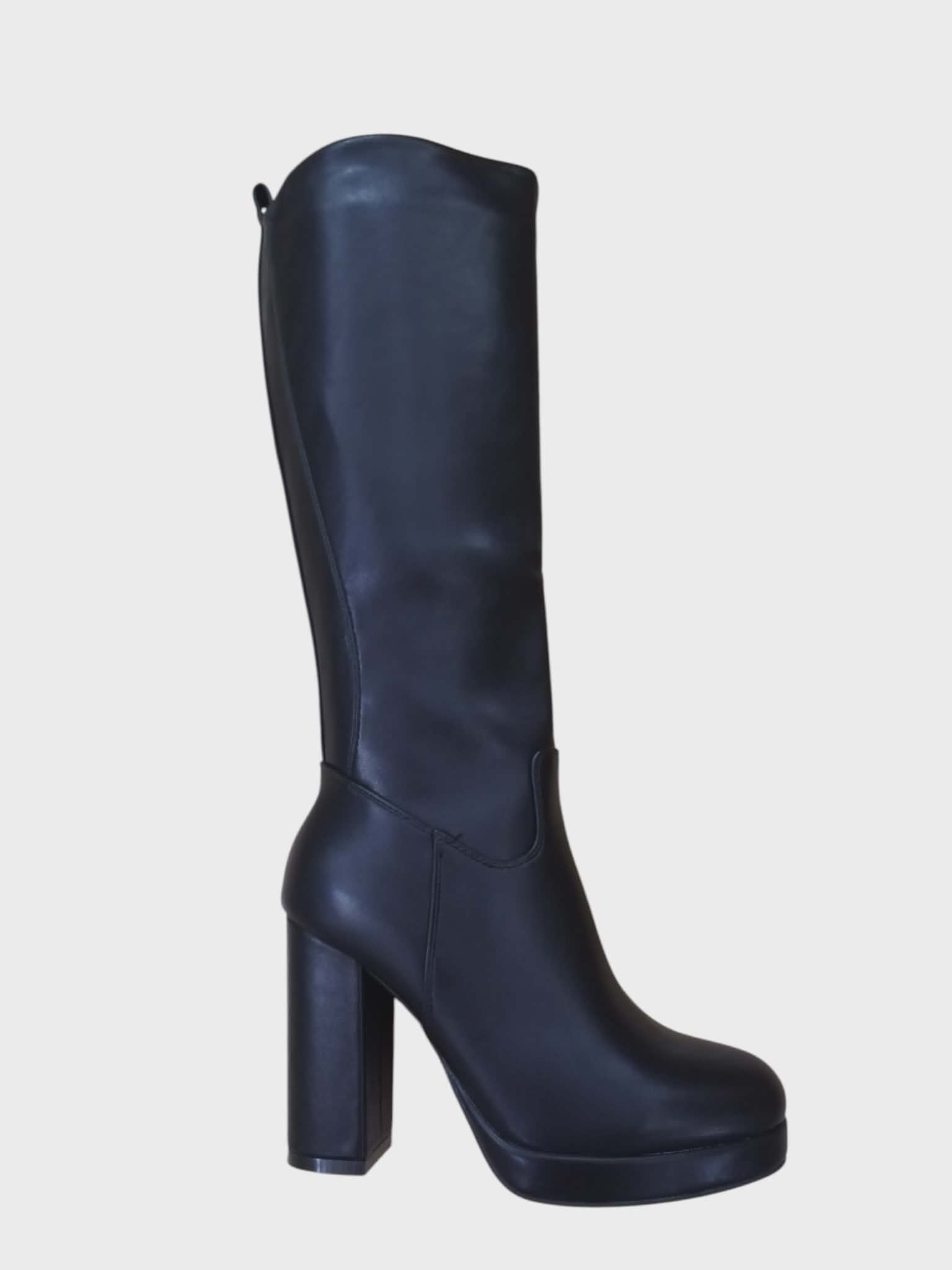 Δερματινη μποτα με ψηλο τακουνι και φερμουαρ!