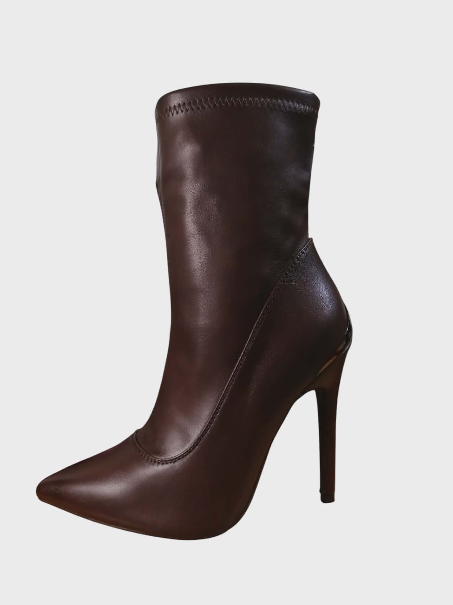 Ψηλα δερματινα μποτακια σκουρο καφε-καλτσα με λεπτο τακουνι!